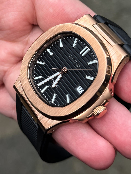 Rosegold "Black Dial" Nautilus Rubber Mod