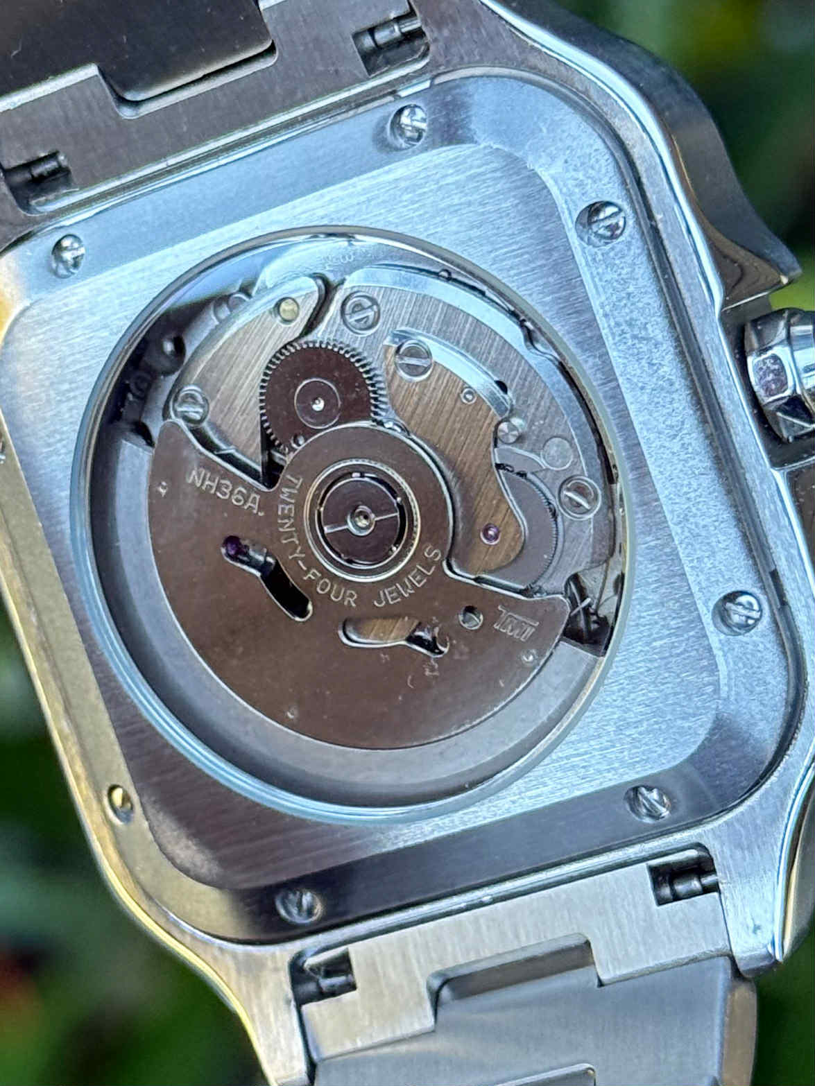 The movement in this watch is automatic Seiko NH36A (TMI).